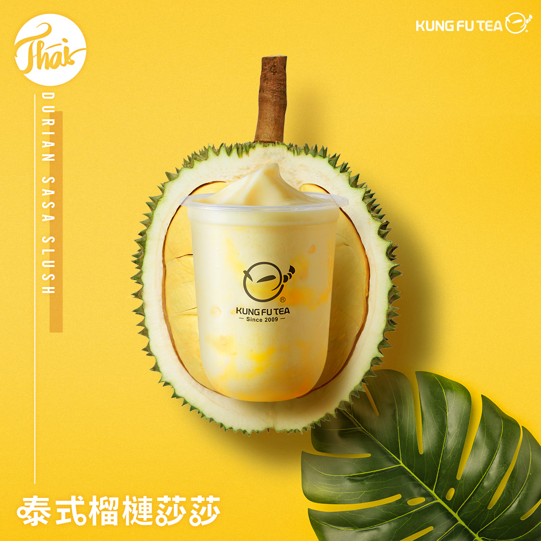 全台首創榴槤飲品就在功夫茶!「泰式榴槤莎莎」內含來自泰國的金枕頭榴槤果肉,加上香草冰淇淋與鮮奶製成滑順冰沙,夏天來一杯超消暑!而另一款「芝士榴槤莎莎」則以泰式榴槤莎莎為底,搭配獨家芝士奶蓋,鹹香濃郁,令人回味無窮!【喜歡嗎?這邊還有】
