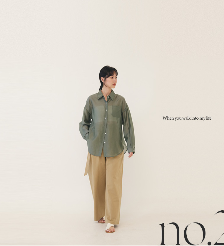 透視襯衫穿搭提案3:透視襯衫x寬褲
