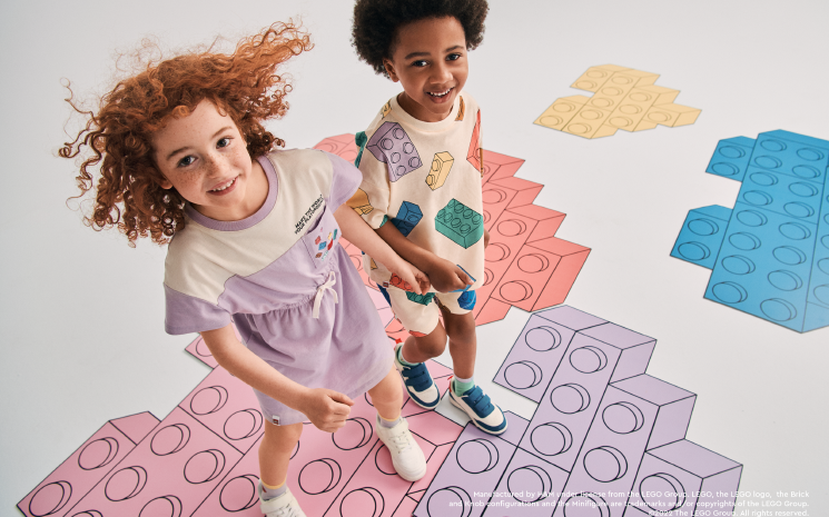 把樂高層層堆疊的玩法帶進服裝中,帶有樂高圖案的上下著,像是被組合起來的積木般和諧經典!