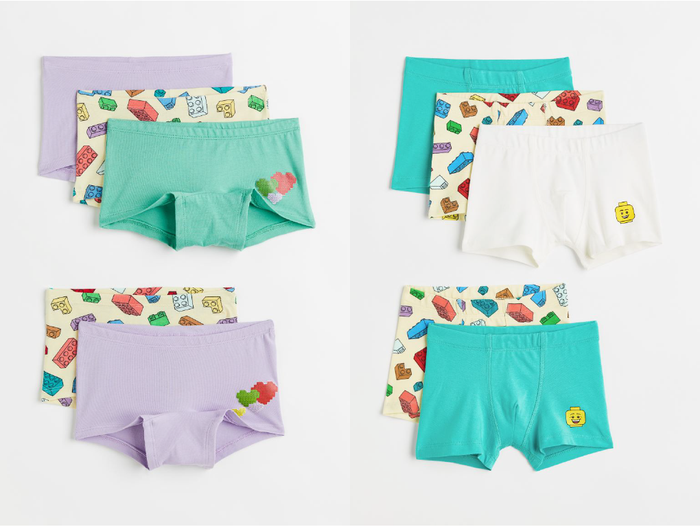 這次H&M x LEGO系列有推出平口內褲和四角褲,不論家裡是小霸王還是小公主都有得買喔!