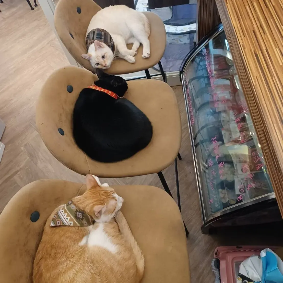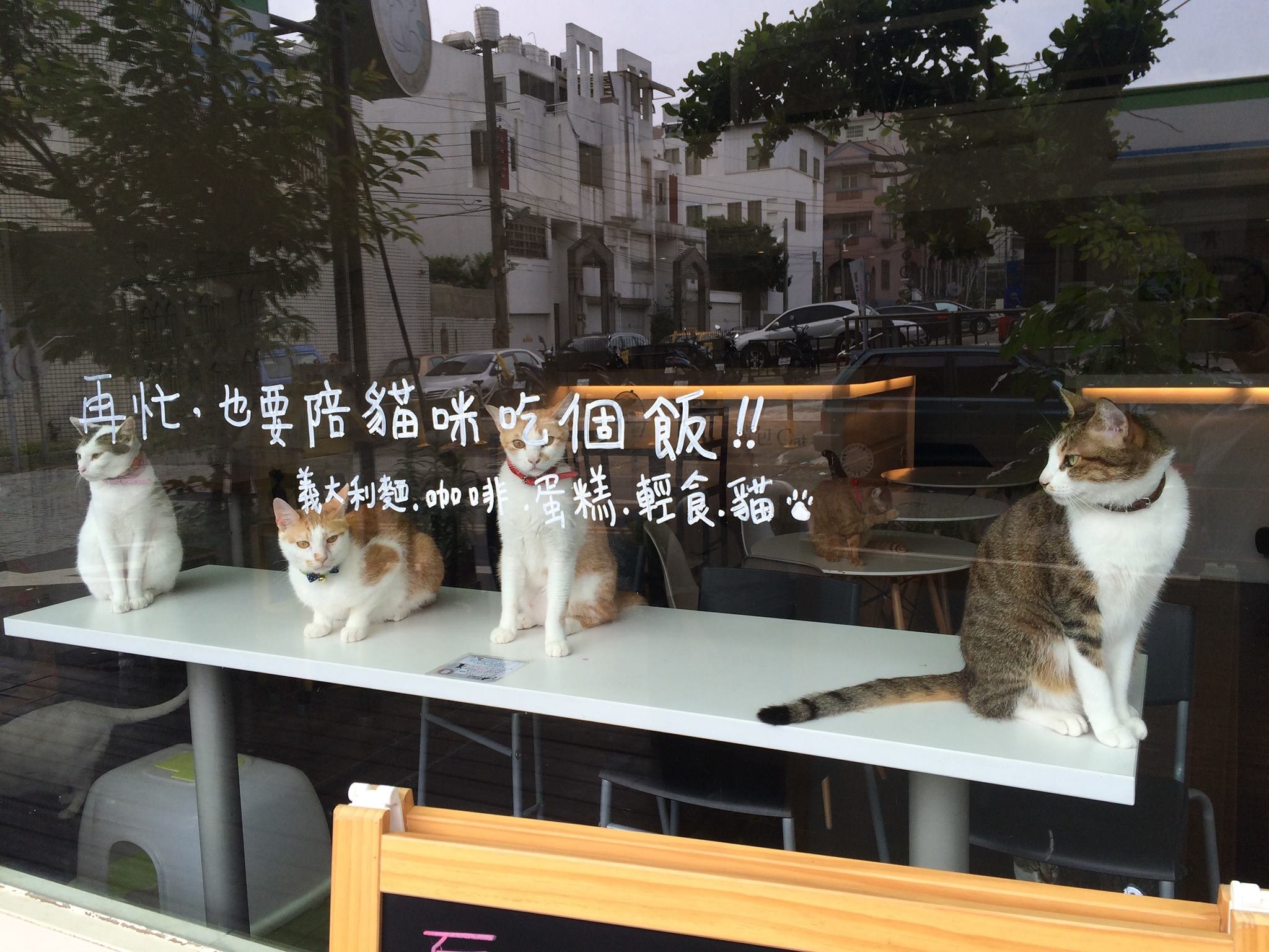(為了宣導「認養代替購買」的觀念,貓咪們全部都是認養的哦!)店內空間不大,卻有如在家般的溫馨感,提供各式平價美食,不只甜點,連火鍋都有!店內還設有空氣清淨機及負離子過濾器,有潔癖的貓奴們不用擔心衛生問題。(貓老闆咖啡同時也是寵物友善餐廳,大家可以帶著家裡的主子一同去玩耍~)台中貓咪咖啡廳:浪浪別哭