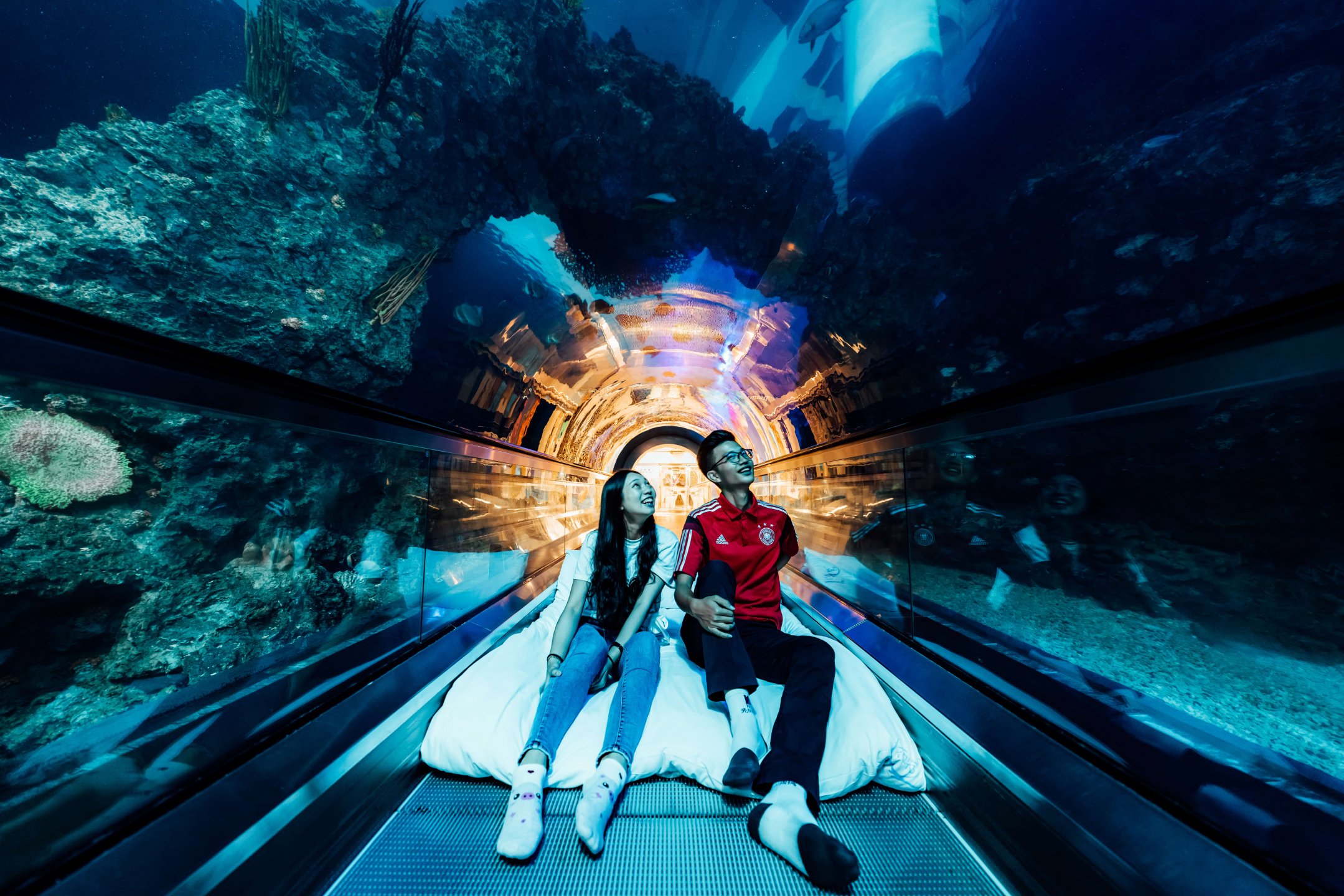 夜晚能在光影交錯的海底隧道、如夢似幻的大洋池與海藻森林內任選睡眠區,與海洋生物共眠。