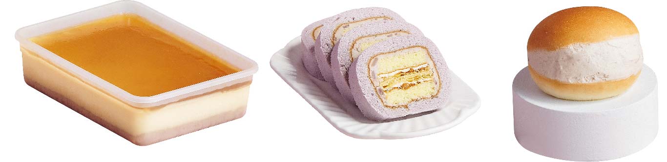 「芋泥布蕾盒」有淡雅的焦香味;「芋泥肉鬆拿破崙捲」把芋頭顆粒、肉鬆和戚風完美結合;「芋泥羅馬包」芋泥及奶香十足,冰冰吃更好吃~