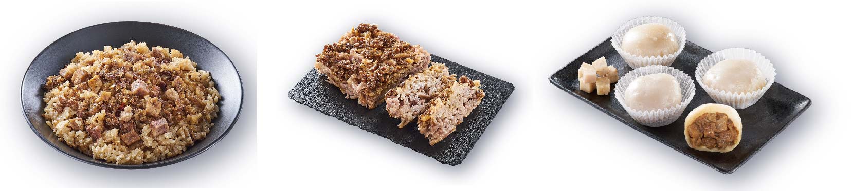 「芋香米糕」大甲芋頭、肉燥和圓糯米的結合,是辦桌的明星菜色;使用 60% 的大甲芋頭和在來米製成的「肉燥芋籤粿」,口感滑順紮實,當早餐吃超適合!
