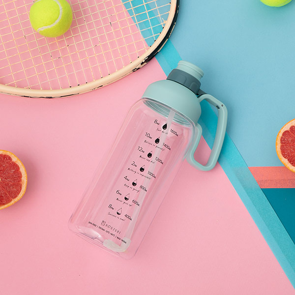 大容量水瓶,一次裝滿一天的份量!水壺上不僅印有時間刻度,還有顯示ml數,到底喝了多少水一目了然~水壺配有彈跳吸管可輕鬆直飲,寬口設計好清洗不怕髒污細菌殘留,無毒耐磨TRITAN材質,可耐冰耐熱不含雙酚A,喝水時安全又安心!時間表水瓶推薦3:生活倉庫-喝水囉.2000ml大容量水壺