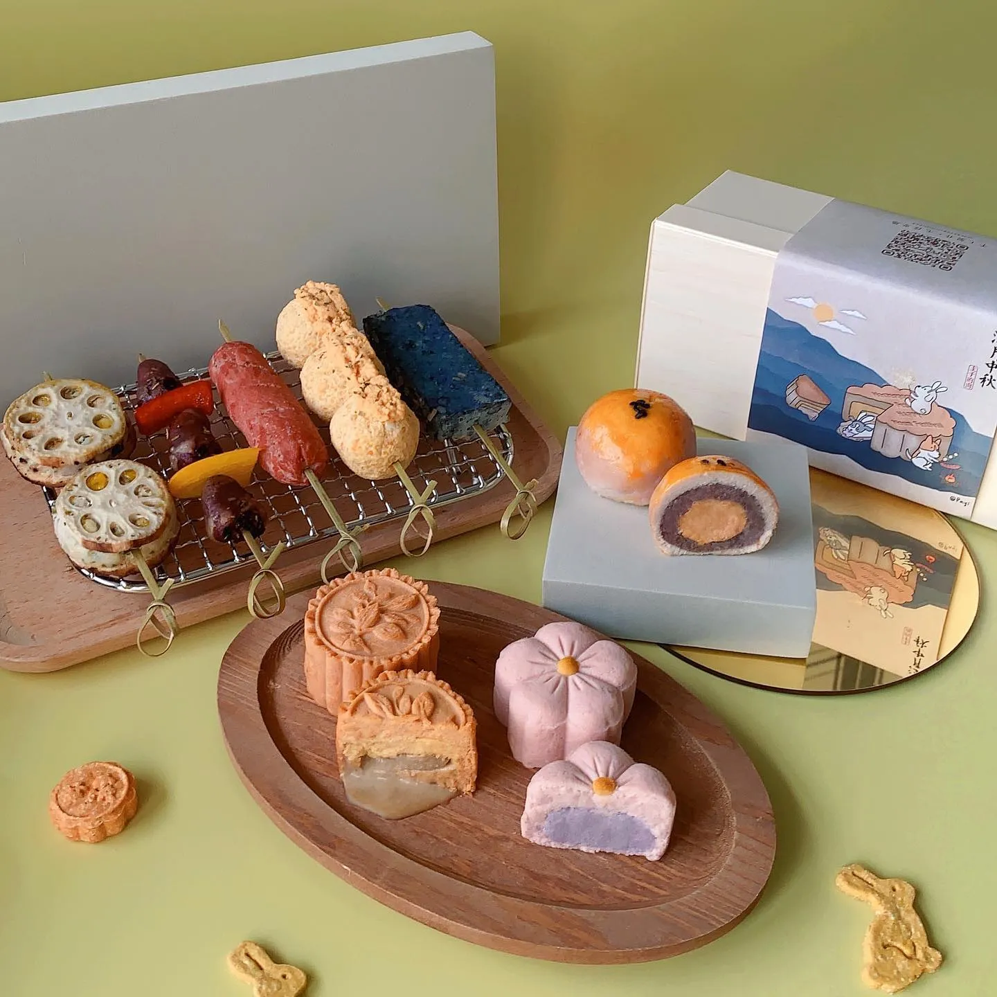 不只有月餅還有烤肉!主子の肉這次推出四款中秋節限定商品:含有蛋黃酥、奶香紫薯櫻花月餅和牛奶糖流心月餅的「汪月中秋月餅禮盒」;烤肉必備豬血糕、魚香藕餅、 義式香料雞心串、古早味香腸和明太子雞肉丸的「汪家香烤肉串禮盒」;超勾錐「玉兔蛋黃酥餅乾」和「迷你月餅」,超多選擇好想每個都來一份!【喜歡嗎?這邊還有】
