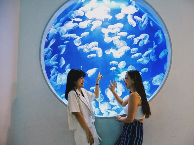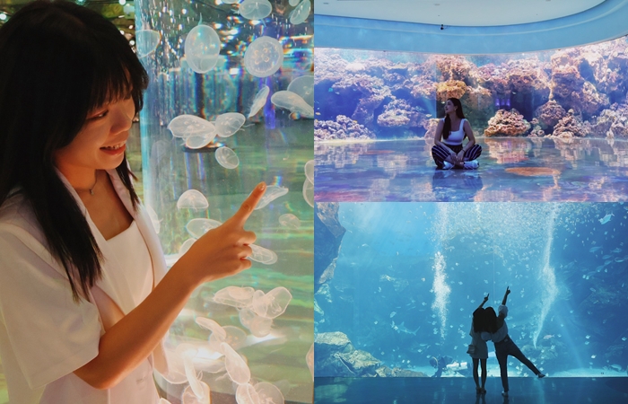 人氣2:癒見水母。這個展區有各色燈光映照著透明水母,營造出如萬花筒般的魔幻世界,奇幻又浪漫的氛圍,成為IG上熱門的拍照打卡點。