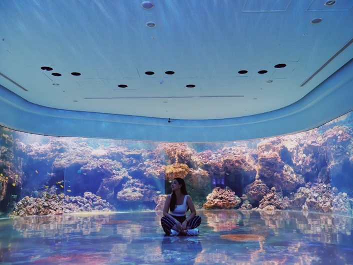 人氣3:珊瑚潛行。擁有180度環景設計,展現湛藍海洋、珊瑚礁的多樣性,看見各魚種川穿梭在珊瑚間,可愛共生的畫面。Xpark 3大種優惠Klook獨家販售