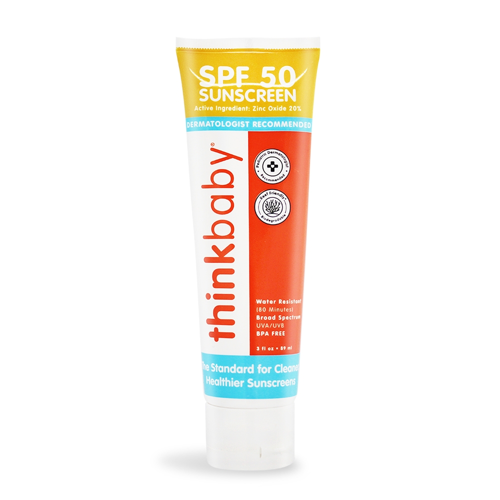 給寶寶SPF50+的絕佳抗UV防護!這款防曬為添加Mexoryl XL、Tinosorb S與物理性防曬濾劑二氧化鈦的混和性防曬。除了防曬成分外,內含乳木果油、雪亞脂、甘油配方,讓寶寶在防曬的同時也能滋潤肌膚。(雖然不是純物理性防曬,但這款防曬乳有通過皮膚科與小兒科醫師測試,塗抹在寶寶身上也不用擔心~)寶寶防曬推薦2:thinkbaby-星寶貝純物理防曬霜