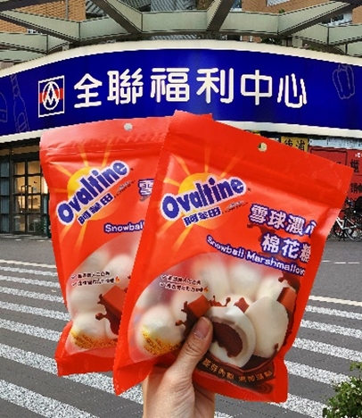 第3款:牽絲起司巧克力棉花糖。吃棉花糖也可以很奢侈、罪惡!將牽絲的棉花糖放入簡易的鋁箔烤盤裡,遇熱融化牽絲的起司香變成甜鹹交織,視覺、味蕾雙重饗宴! 全聯買最方便!雪球棉花糖攻佔中秋節社群版面