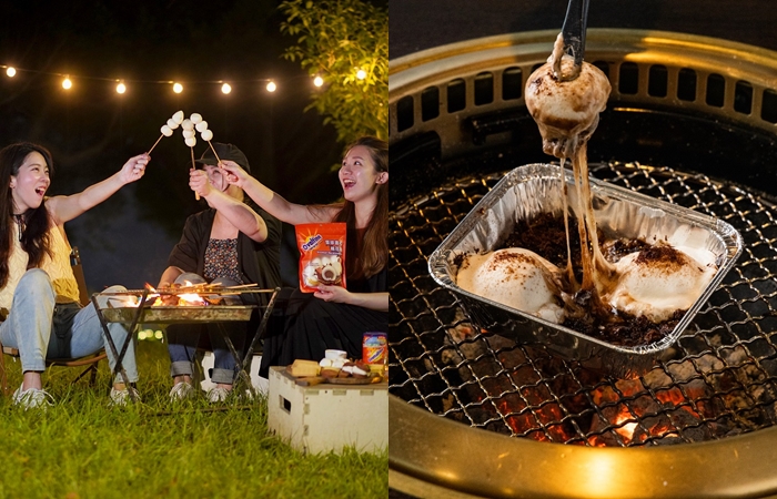 第1款:BBQ棉花糖烤串。零失誤烤法就選它,利用微微火烤、均勻旋轉受熱,大家一起邊圍著烤邊聊天,享受樂趣外,蓬鬆、微酥的金黃外皮,流出濃醇巧克力麥芽的濃郁滋味!