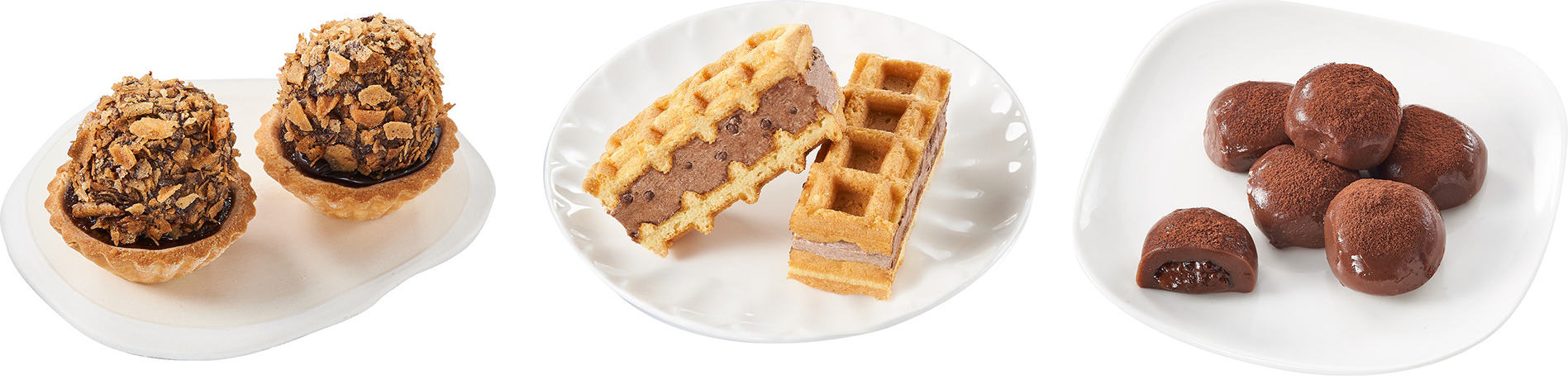 柔軟的巧克力布蕾與阿華田爆漿棉花糖內餡與酥脆的塔皮口感互不相搶,讓口感口味更加分;「巧克力鬆餅三明治」鬆餅口感鬆軟,內餡添加脆酷力,麥芽、巧克力香氣充斥口腔;「巧克力滋心糰子」外皮裹著滿滿麥芽可可粉,搭配內餡的瑞士進口脆酷力抹醬,讓可可控愛不釋口。