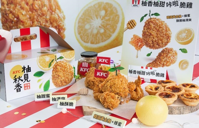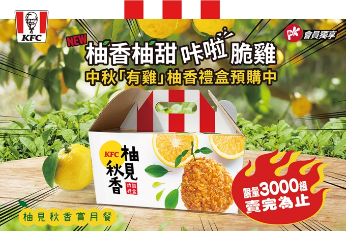 中秋節美食不間斷!除了烤肉美食,肯德基也推出限定「柚子炸雞禮盒」,從9月8日至10月24日期間販售。KUSO中式水果提盒為包裝,限量3000份預購,這次新口味「柚香柚甜咔啦脆雞」也搭配多種賞月餐組合,並加碼送蛋撻禮盒,讓大家假期吃到飽!