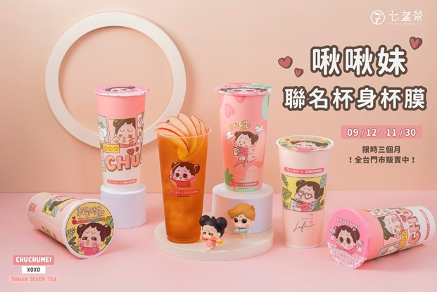 超人氣粉紅小公主啾啾妹與手搖飲品牌「七盞茶」聯名,推出超Q4款杯身、3款互動杯膜及限量環保杯,讓你邊喝飲料邊療癒你的上班日常。從9月份萌翻上架,為期限時3個月的活動,而且打卡還有折價優惠,趕緊喝一波。