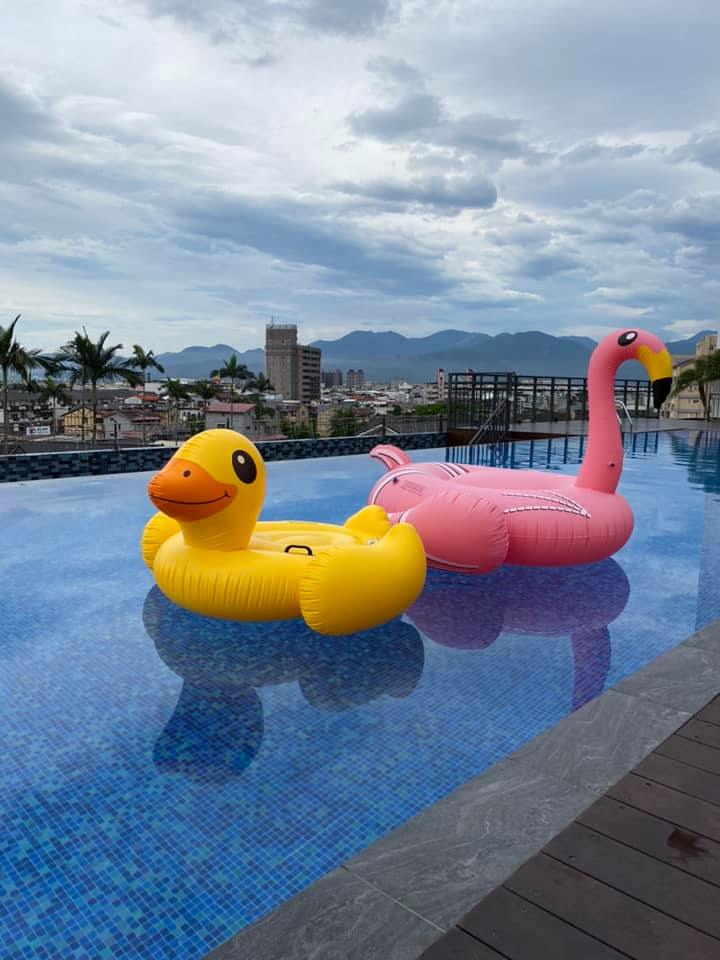 「松青泳池」不僅可以一邊享受宜蘭山景,還能一邊和孩子玩水,這個戶外設施也是絕佳的拍照景點!