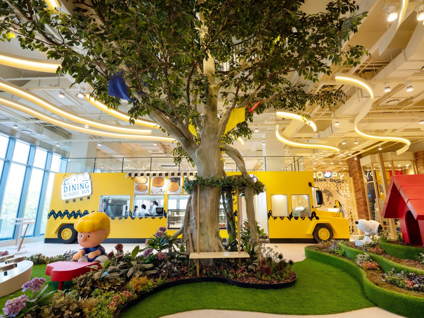 在「棒球名人堂」的3樓,史努比雜貨鋪以及餐車,除了販售周邊商品之外,連花園造景都是以花生漫畫為主題,可愛的漫畫公仔都在這裡!