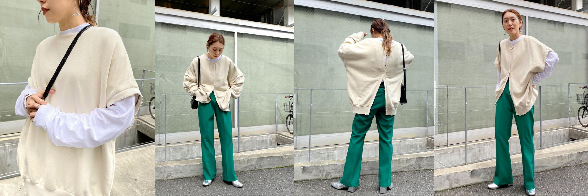 除了針織衫,WWG連大學T都有推出這種多穿款式,在看到這款大學T之前,完全不知道原來大學T可以做成這樣~最喜歡把兩側袖子拆掉的穿搭方式,落肩+微微破損的設計,讓原本給人慵懶感的大學T瞬間變得都會又有精神!拆下來的袖子也記得放在包包裡,晚上騎車再裝上去防風,妳的袖套絕對街上最好看!
