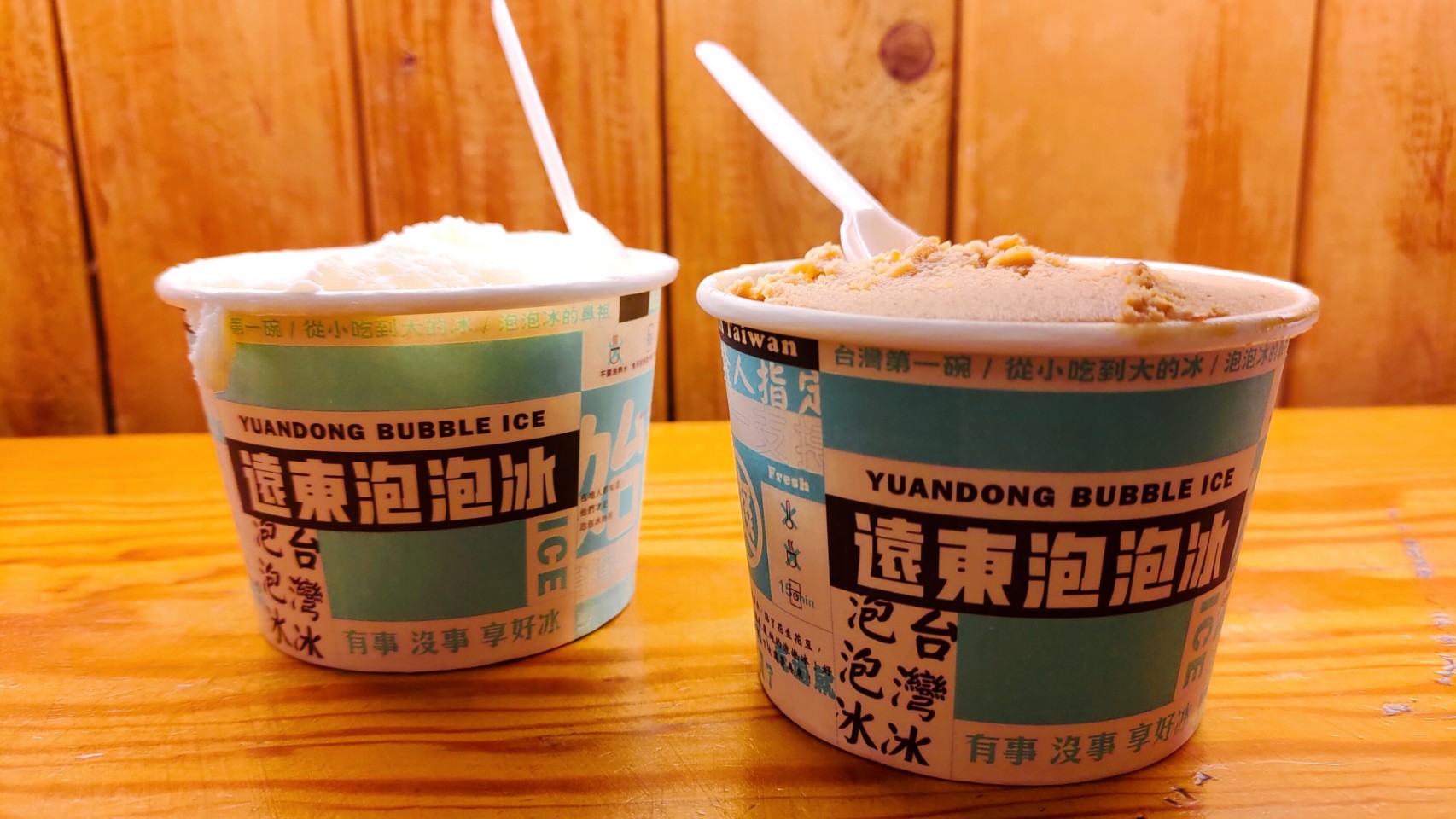 來基隆千萬不再只吃沈記、陳記泡泡冰了~大概離廟口三分鐘的路程,有一家在地人大推的「遠東泡泡冰」!遠東泡泡冰是一間可愛溫馨的小店,在這裡不需重蹈在廟口夜市因擔心另一組客人沒位置坐,而快速吃完美食的壓力~最推薦花生口味,口感綿密到不行,還可以吃到花生細緻顆粒,整體吃起來有濃郁的米漿味,完全不膩口!雞蛋牛奶口味則是mix蛋香和煉乳,比起花生口味,更帶有滑順口感~