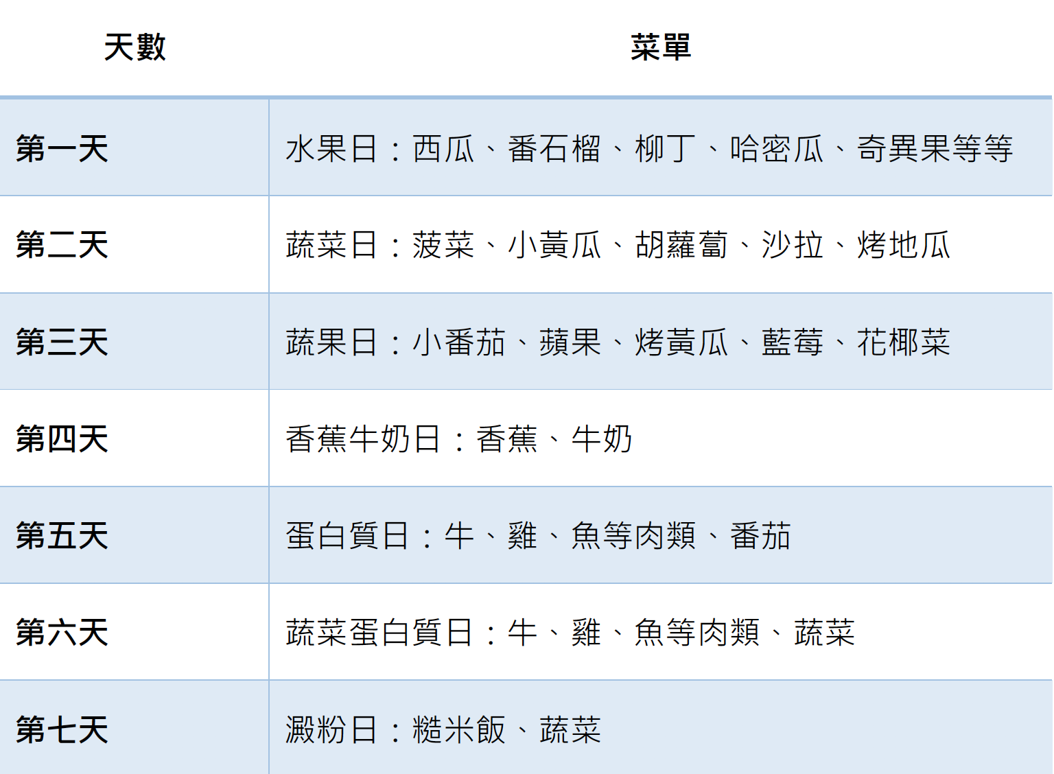 但這樣的菜單因為每都都只吃單一種食物,長期的話容易導致營養失衡。且蛋白質和碳水化合物的攝取不足,會導致人體的肌肉量下降。因此如果你的目標是快速減肥,那麼可以嘗試看看GM減肥法,但如果是想維持長久的健康體態,建議還是改變飲食及運動習慣才是最好的哦!