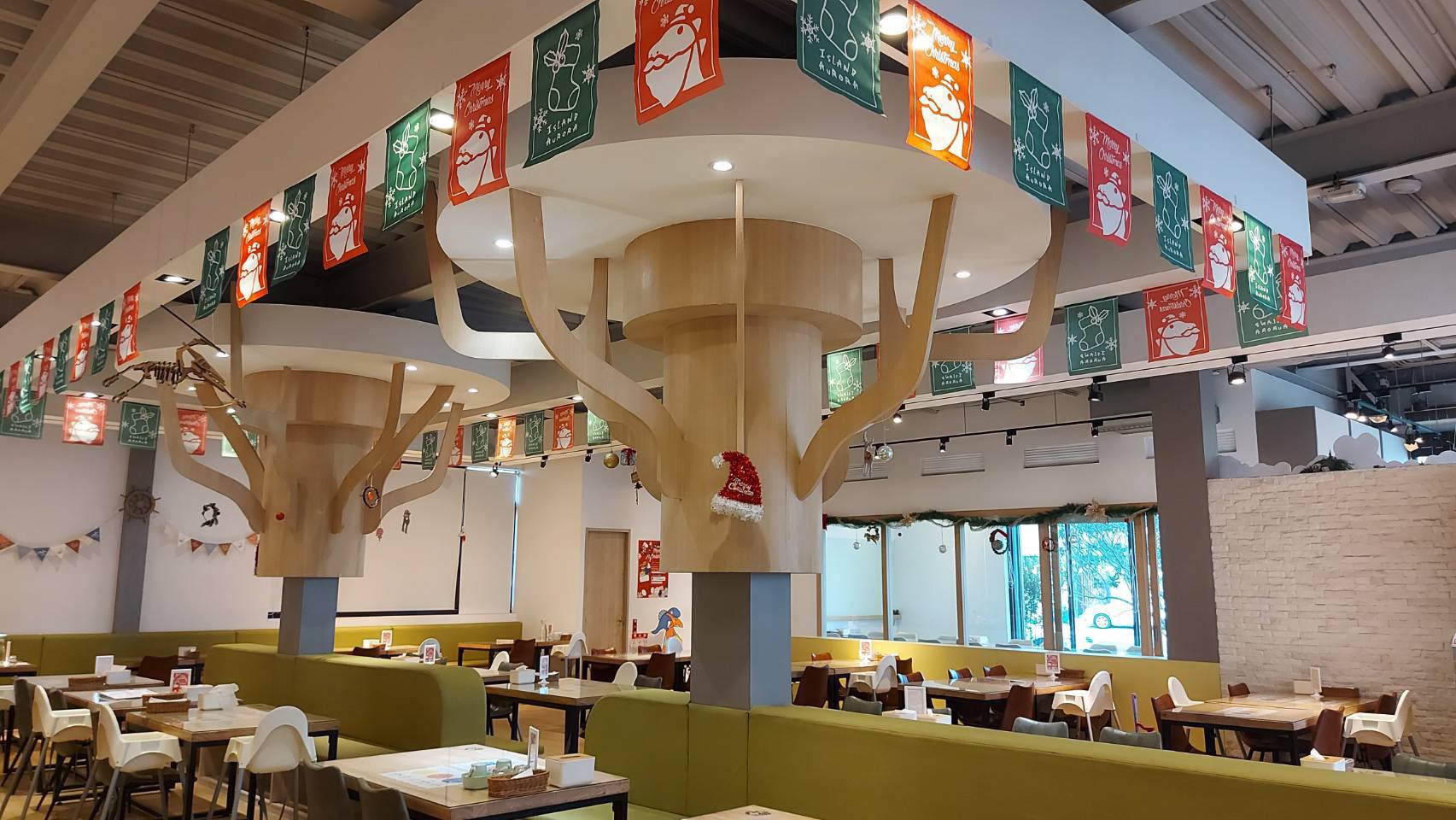 推薦理由1:餐廳logo是超可愛的恐龍,抓住許多小朋友的心,連餐廳都走綠色的森林系風格,每組座位都有一面是沙發座椅,用餐可以讓小朋友坐得舒適。