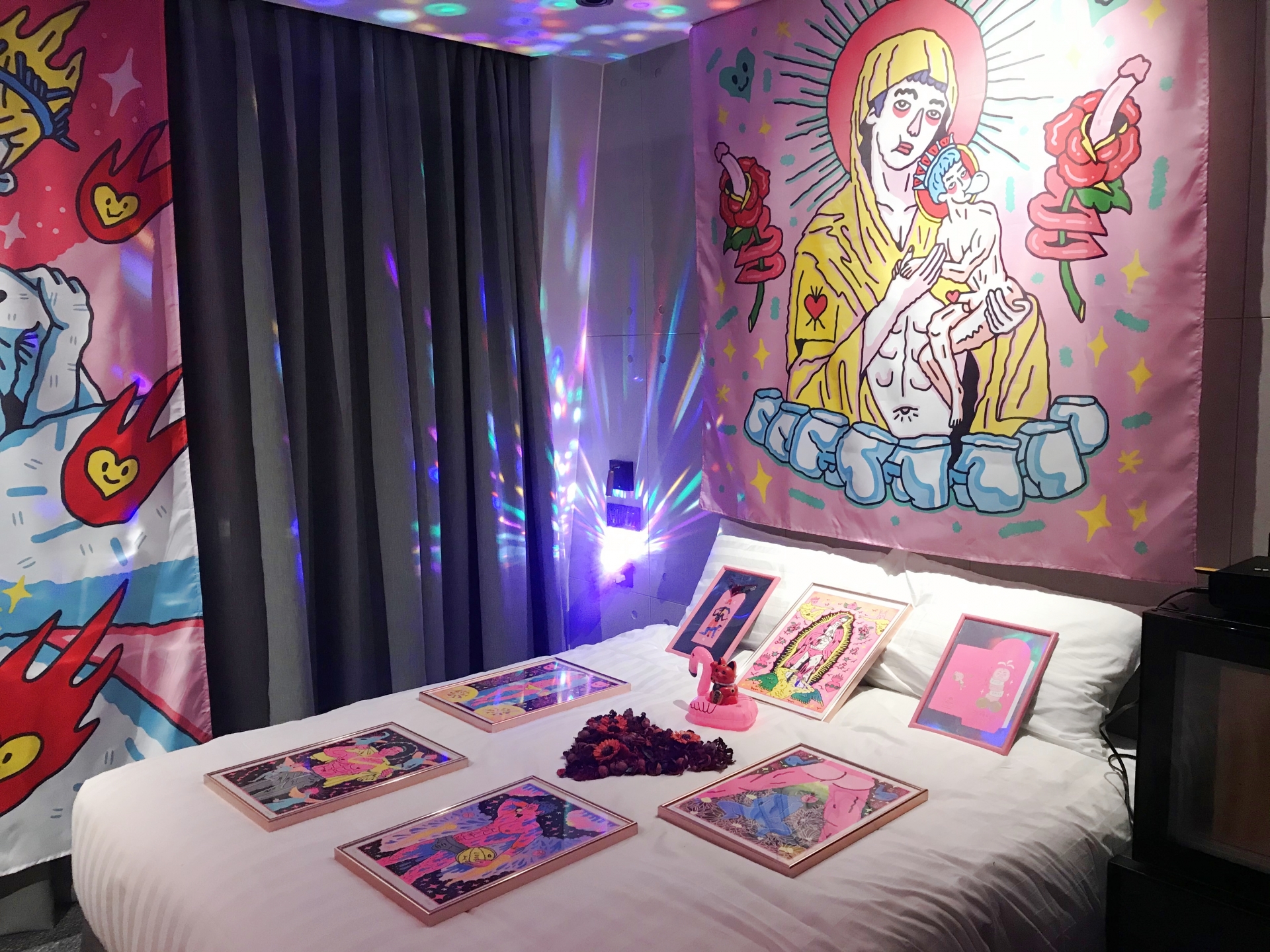 LGBT多元:愛,始終美好。愛超越原本的性別框架,尊重每個人愛的方式。這間主題房色彩鮮艷,以神、天使呈現愛的概真諦,翻玩大師們的知名畫作,想怎麼愛就怎麼愛!