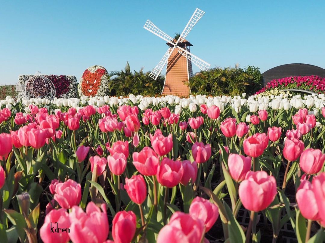 不用到荷蘭也能欣賞鬱金香!今年中社觀光花市特別從荷蘭引進30萬株、多達50多項品種的鬱金香,站在五顏六色的鬱金香花海裡彷彿置身荷蘭,加上充滿南法風情的紫色鼠尾草花海,搭配歐式童話小屋造景,輕鬆就能拍出歐洲童話風美照。