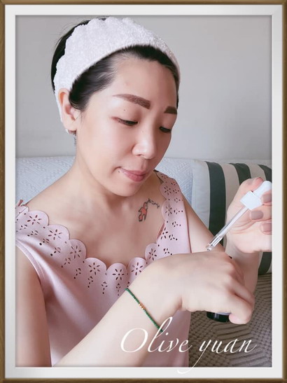 「Kira維他命C發光精華( 發光瓶)」:經期前一週會在玻尿酸前使用,不讓肌膚黯沉無光,而且這是第三代喔!上面還有共同開發者簽名背書(權威配方師、頂尖級皮膚科醫師),讓我很安心。「左式右旋維他命C」有9%耶!而且無水配方讓維他命C更加穩定,也因為無水配方,使用時會有微熱感,呈現油相質地,所以只要用約1~2滴,但2~3分鐘後就會被肌膚完全吸收(驚!),另外還有淨白肌膚的「阿魏酸」、提升肌膚保護力的「維生素E乙酸酯」,及舒緩肌膚的「沒藥醇」,早晚使用,但白天請一定要搭配防曬乳!我好久沒用粉底液了,因為不想被遮住肌膚的光芒!