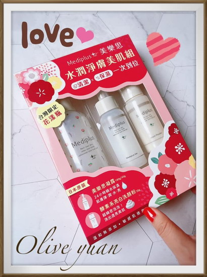 最近還有這個超威的產品!這是日本為了台灣所設計的「台灣限定美樂思凝露花漾瓶」耶!而且還搭配成「Mediplus美樂思水潤淨膚美肌組」,特別在2021年母親節推出,