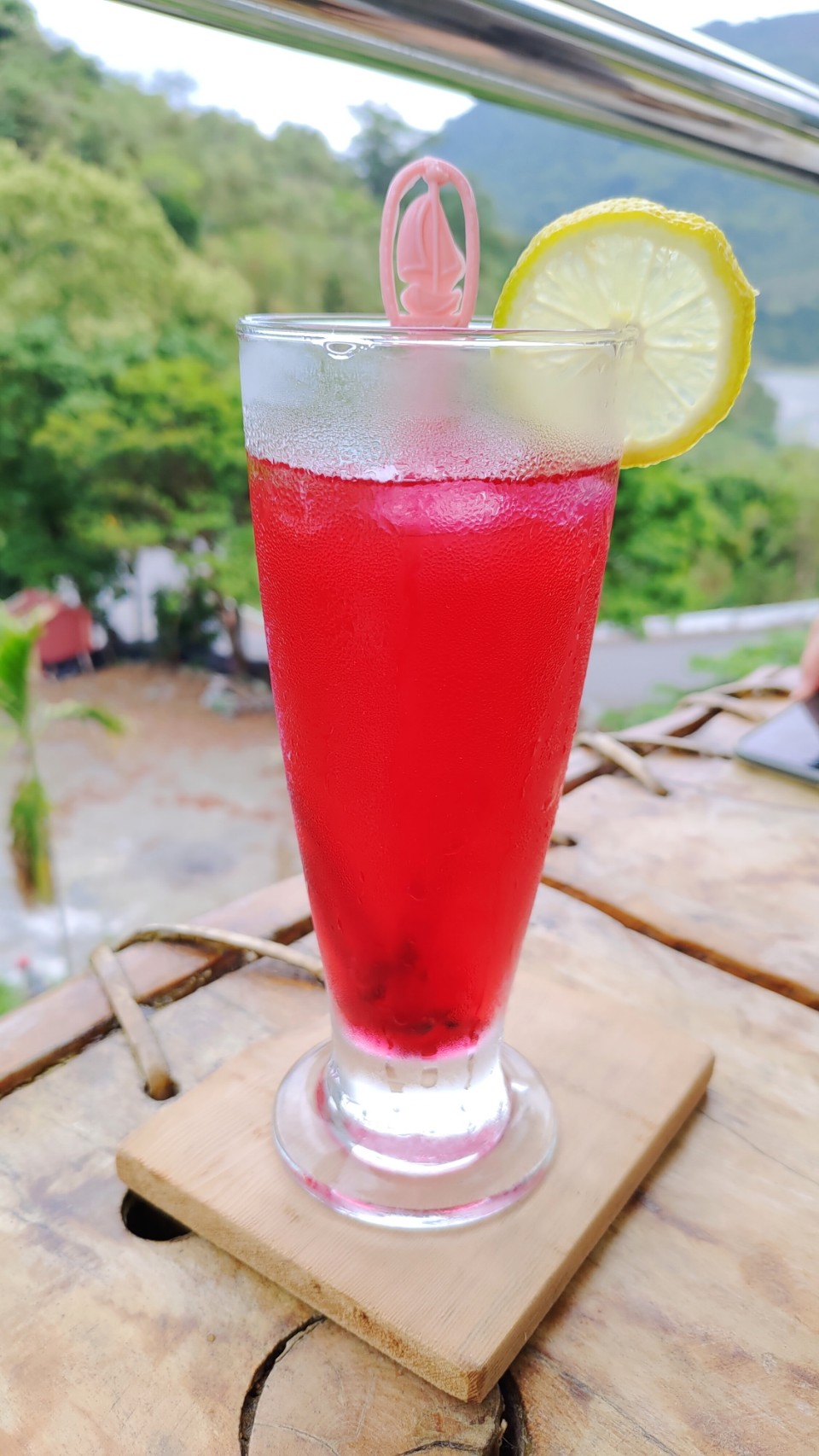 這杯加了自製洛神蜜餞、小米酒、檸檬汁的部落特調,喝起來酸酸甜甜,格外清爽!