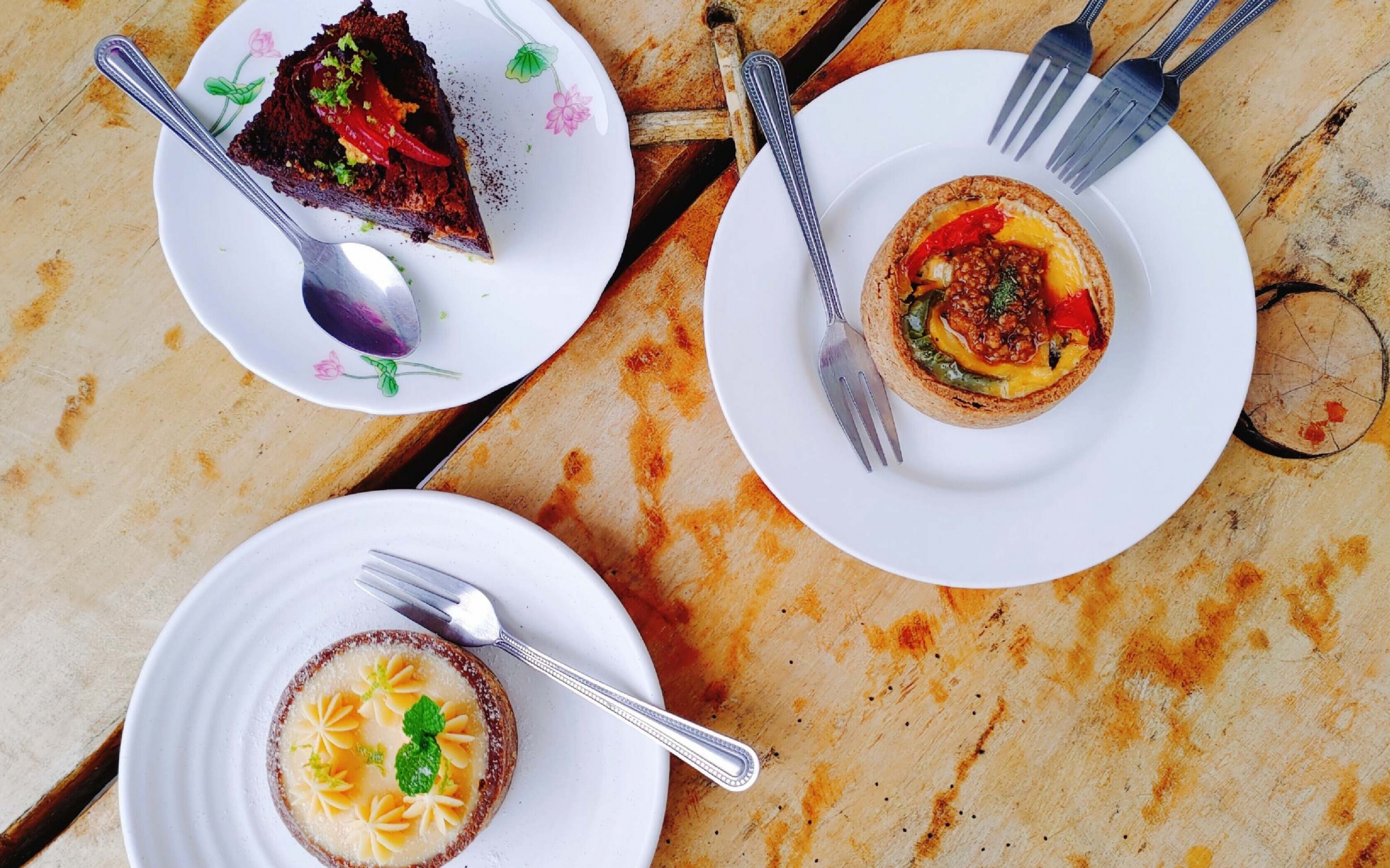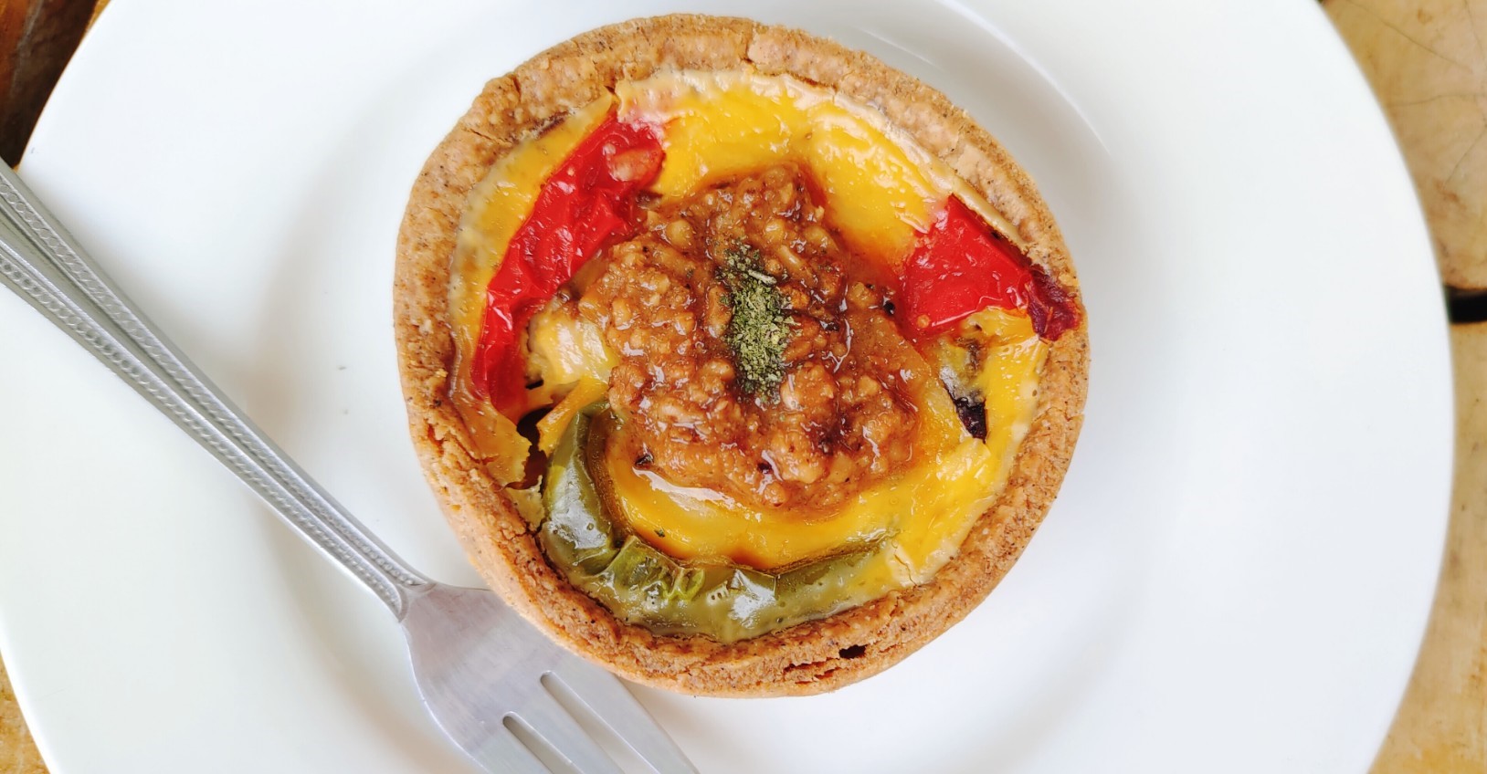 鹹派的餅皮因為加了樹豆粉而更有香氣、更硬,剛好搭配閒味調配適中的內餡一口品嚐,口感頗有層次!