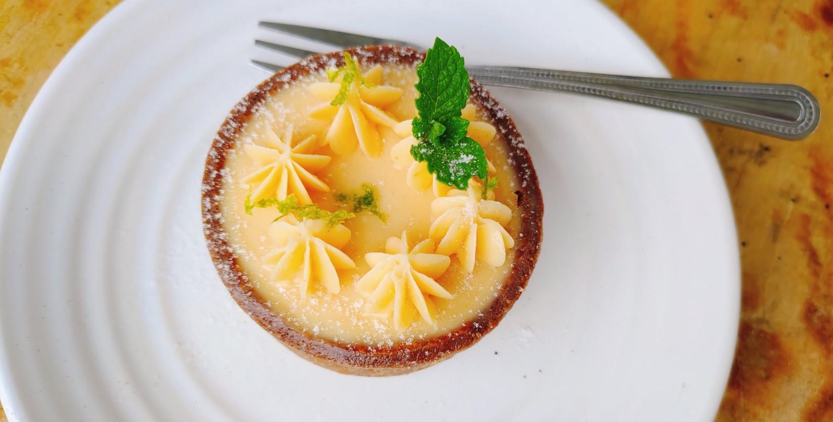檸檬塔的塔皮一樣也有加入樹豆粉,喜歡蛋糕塔類是偏硬的口感的人會愛!檸檬內餡不死甜,